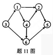 对题11图所示的有向图进行拓扑排序。下列选项中能够得到的拓扑序列是