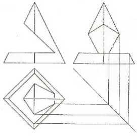 补全带切口的四棱锥的水平投影并求出侧面投影。