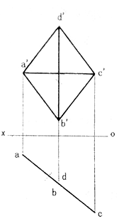 正方形ABCD为铅垂面,AC为对角线,完成正方形的两面投影。