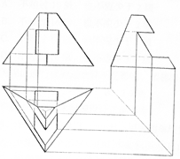 评分参考:水平投影5分、侧面投影5分,未画完整适当扣分。