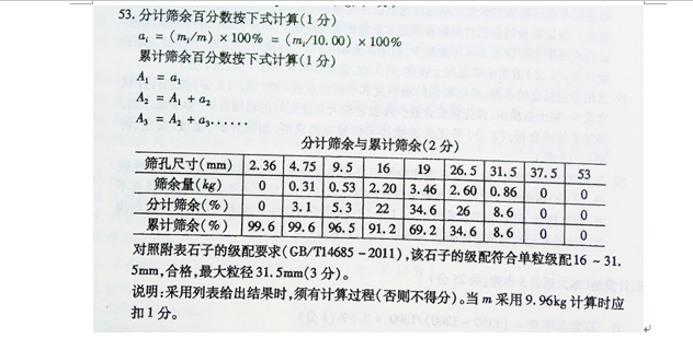 某石子干燥试样10.00kg。经筛分后的结果见下表。试评该石子的级配和最大粒径。