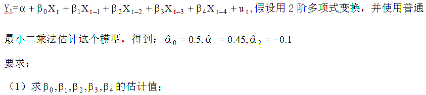 设有限分布滞后模型为(2)求X与Y的短期影响乘数,长期影响乘数。
