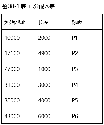 假设系统在时刻10:00的已分配区表如题38-1表所示,空闲区表如题38-2表所示。题38-1表和题38-2表中数字均为十进制,单位为字节。表现主义作家卡夫卡的长篇小说有( )。