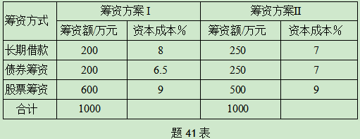某公司为新项目成立子公司,有两个筹资方案可供选择,有关资料测算如题41表所示。请确定最佳筹资方案即最佳资本结构。