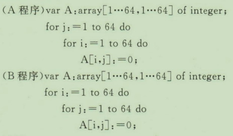有一个程序要将64行×64列的整型数组所有元素的初值置为“0”。假如釆用页式虚拟存储管理方法,其页面大小可以存放128个整型数组元素(即正好存放两行数组元素),数组中的元素按行编址存放。系统提供一个主存块用来存放数组信息,初始状态为空。程序编制分别如下:试问:(1)整个数组占
