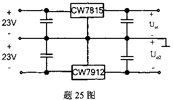 题25图所示直流稳压电路的输出电压Uˇo1和Uˇo2分别是________。