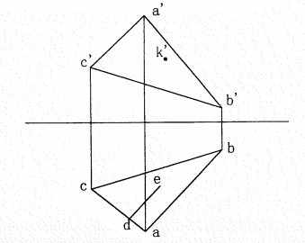 已知平面ABC内直线DE、点K的一个投影,求其另一投影(d’e’和k)。