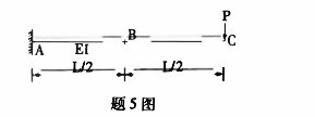 题5图示悬臂梁自由端受大小为P的集中荷载,梁的抗弯刚度为EI,则梁中段B截面的垂直位移为