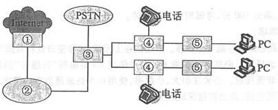 请给出如下图所示的ADSL系统结构中编号①-⑤的名称。