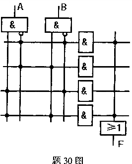 题30图所示可编程PROM器件中,A和B为输入量,则输出F=____。