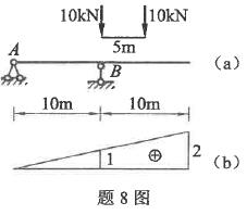 图(b)为图(a)所示结构B支座反力影响线,在图示移动荷载作用下B支座反力的最大值等于