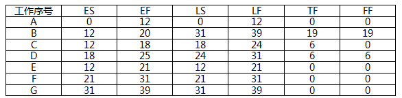 计算各项工作的最早开始时间和最早完成时间,最迟开始时间和最迟完成时间,以及各项工作的总时差和自由时差,并将计算结果填写在表2中。
