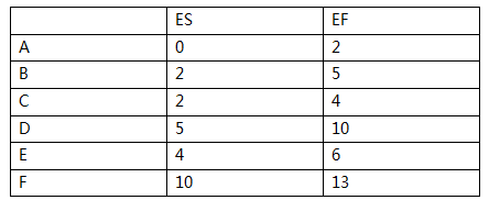依次类推可以计算出各项活动的最早开始时间、最早完成时间,如下如所示: