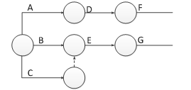 根据下表中工作之间的逻辑关系画出双代号网络图,正确的是( )