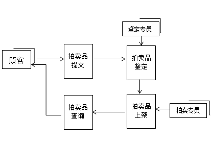 某拍卖网站拍卖管理系统按以下步骤进行管理,试画出该系统的数据流图。(1)顾客提交拍卖品;(2)鉴定专员进行拍卖品鉴定;(3)拍卖专员上架拍卖品;(4)顾客查询上架拍卖品。