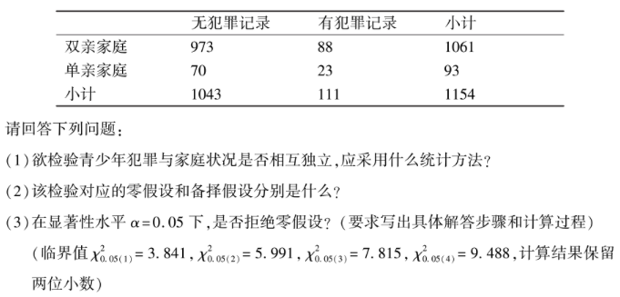 下一篇:为研究青少年犯罪与家庭状况之间的关系,某研究部门随机调查1154名青少年,统计结果如下: