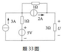 试用戴维南定理求题33图所示电路中的电压U。
