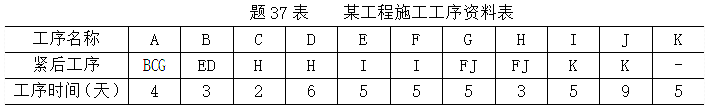 某工程有11道工序,有关数据如题37表,试绘制网络图。