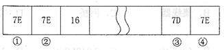 请写出下图PPP协议原始帧中①~④在异步线路上使用字符填充算法实现透明传输时的内容(说明:使用十六进制表示)。