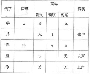 完成下表中的音节结构分析
