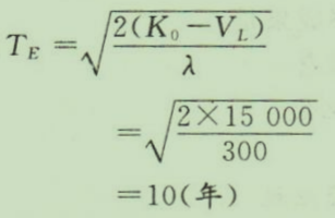 某设备的原始价值为15000元,期末无残值,而设备每年低劣化增加值为300元,试用低劣化数值法计算该设备的经济寿命。