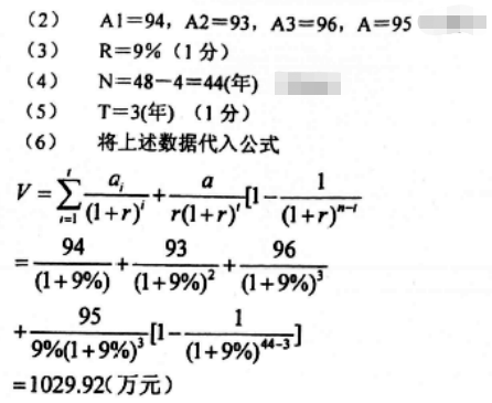 某房地产建成于2007年底,伺候收益年限为48年,2008年底至2011年底分别获得净收益83万、85万、90万元、94万元;预计2012年底至2013年底可分别获得净收益94万元、93万元、96万元,从2015年底起每年可获得的净收益将稳定在95万元;该类房地产的报酬率有9%。试用上述资料估算该房地产2011年底的收益价格。