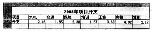 在Excel工作表中有如下图所示的一组数据,为了直观地表达出各项开支占总开支的百分比,应选择的图表类型为