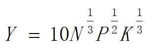 某农场根据氮、磷、钾肥不同的施肥水平与水稻产量的试验数据,建立生产函数模型如下:,其中,N、P、K分别表示氮、磷、钾肥的施用量,Y表示水稻产量。若氮、磷、钾肥的平均施用量分别为27公斤