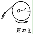如图,定滑轮可看作半径为的匀质圆盘α,圆盘上绕有轻绳,以大小为F的恒力拉绳时,圆盘的角加速度为α,则圆盘的转动惯量J=_______。