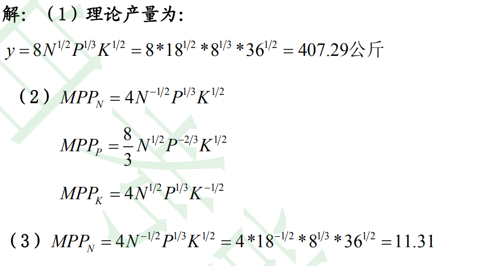 (2)写出 N、P、K 肥投入的边际产量函数;