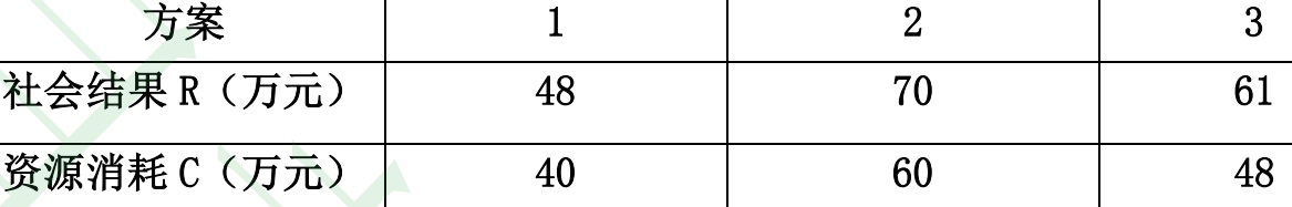 三个农业技术政策待选方案,其资源消耗和社会结果如下表,请用绝对经济效益指标和相对经济效益指标进行方案优选。
