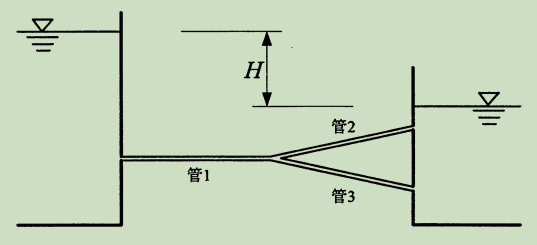 如图所示输水长管,管1、管2和管3的长度均为1,直径均为d,比阻均为a。已知作用水头H恒定不变,求总流量。
