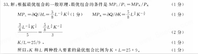 已知厂商的生产函数为Q=L3/8K5/8,其中K为资金数量,L为劳动力数量,又设PL=5元,PK=3元。求这两种投入要素的最优组合比例。