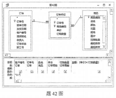 下一篇:基于订单、订单明细和商品3个表创建一个查询,如题42图所示,也可以用SOL查询实现题42图查询设计视图的功能。 要求按照下列SQL语句中标号的顺序,依次填写恰当的内容,完善该SQL查询语句。