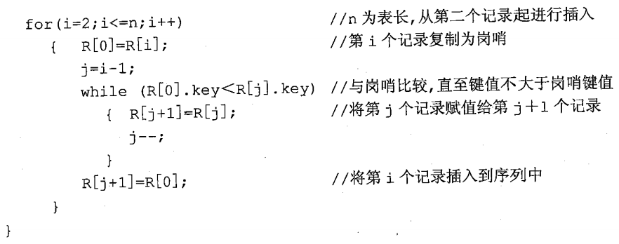 给出直接插入排序的算法。