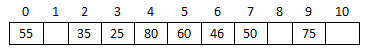 试用关键字值的序列:75,25,80,35,60,46,50,55,建立散列表。