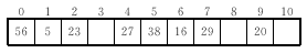 试用键值序列20,38,16,27,5,23,56,29建立散列表,