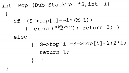 出栈函数Pop(S)。提示:设其中一个栈标识为0,另一个栈为标识1。