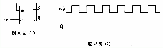 分析题38图(1)所示电路,写出该电路的状态方程,请将题38图(2)绘制在答题卡上,并画出题38图(2)中Q的工作波形(设Q起始为0)。
