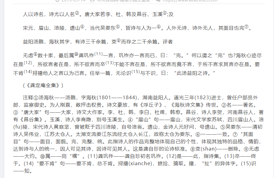 上一篇:龚自珍《书汤海秋诗集后》一文提出的一个崭新的论诗标准是“________”。