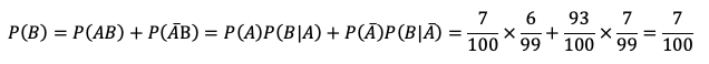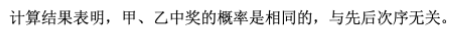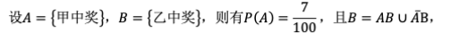 100张彩票中有7张有奖,现有甲先乙后各买了一张彩票,试用计算说明甲、乙两人中奖概率是否相同.
