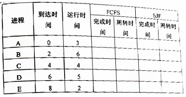 假设一个系统有5个进程,它们的到达时间和运行时间如下表所示,忽略I/O以及其他开销时间。(1)请给出先来先服务算法(FCFS)和最短进程优先算法(SJF)下各进程的完成时间、周转时间?(2)计