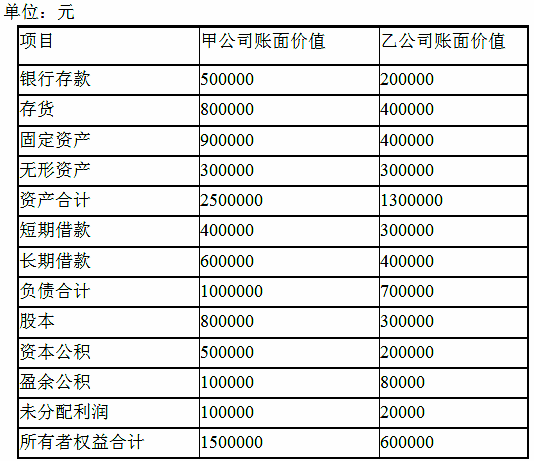 甲公司与乙公司同属于丙集团,甲公司于2008年1月1日发行每股面值1元的股票900000股吸收合并乙公司,合并日,甲公司及乙公司资产、负债和所有者权益如下:要求: