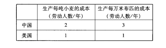 E.美国的布匹生产与小麦生产的绝对成本都高于中国