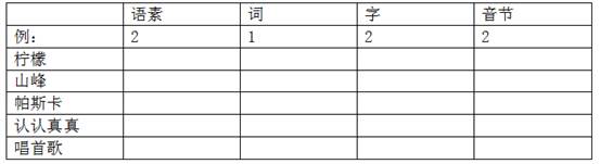 把表格里各单位中包含的语素、词、字、音节的数量填入空格。[图1]