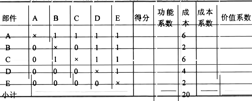 上一篇:某建筑配件售价高,销路差,拟通过价值分析(01评分法),找出应降低成本的部件。该配件由5个部件所组成,各部件功能的重要性从大到小排列为:A→C→B→D→E,各部件成本和功能评价(01评分法)基本数据见下表。专利实施许可谈判