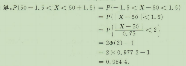 由自动车床生产的零件的长度(毫米)X服从正态分布N(50,0.75²),如果规定零件的长度在50±1.5毫米之间为合格品,求生产的零件是合格品的概率。