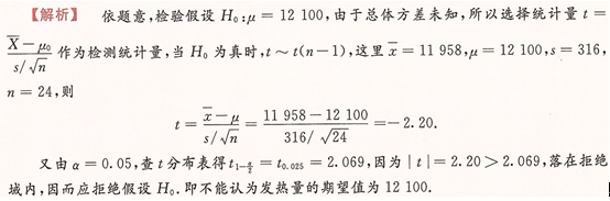 =11958,样本均方差S=316.若发热量是服从正态分布的,试问可否认为发热量的期望值为12100(ɑ=0. 05)?