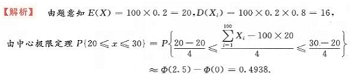 设随机变量X~B(100,0.2)Φ(X)为标准正态分布函数,Φ(2.5)=0.9938,应用中心极限定理,可得P{20≤X≤30}≈ ( )