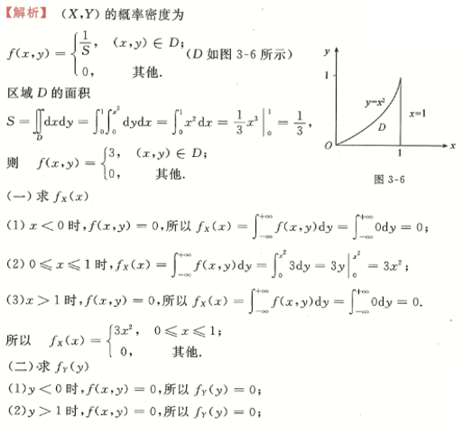 设(X,Y)在区域D上服从均匀分布,其中D:x2≥y,0≤x≤1,y≥0,求(X,Y)的边缘概率密度fX(x),fY(y).